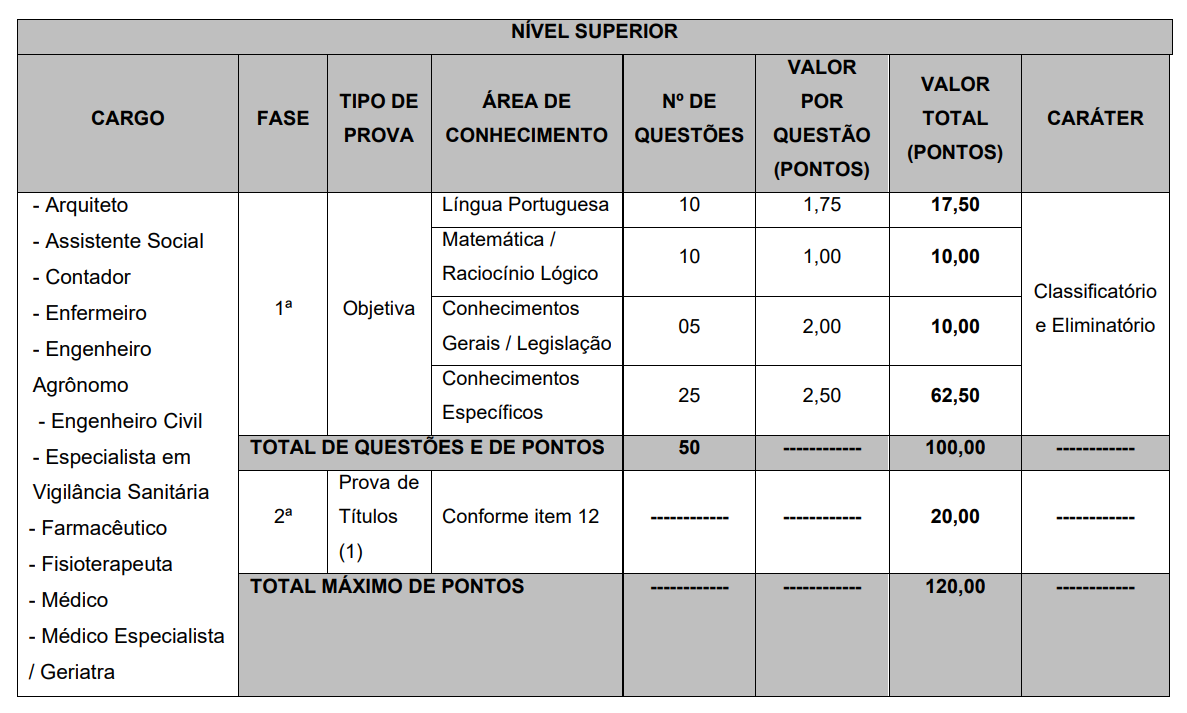 - Primeira Etapa: Prova Objetiva de múltipla escolha, de caráter eliminatório e classificatório;